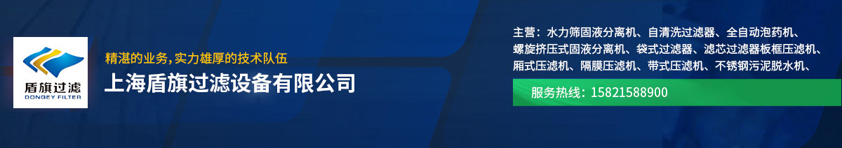 上海盾旗过滤设备有限公司*生产板框压滤机、厢式压滤机、隔膜压滤机、全自动压滤机、带式压滤机、不锈钢污泥脱水机、全自动泡药机、螺旋挤压式固液分离机、水力筛固液分离机、自清洗过滤器、袋式过滤器、滤芯过滤器及整套水处理设备。
