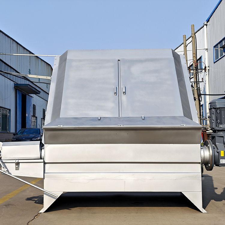 水切网式固液分离机主体为由楔形钢棒经精密制成的不锈钢平面过滤筛面,待处理废水通过溢流堰均匀分布到倾斜筛面上,由于筛网表面间隙小、平滑,背面间隙大,排水顺畅,不易阻塞;固态物质被截留,过滤后的水从筛板缝隙中流出,同时在水力作用下,固态物质被推到筛板下端的螺旋槽里,由螺旋向前推进到挤压段进行再次脱水,脱水后的干渣由出料口排出,从而达到固液分离目的。